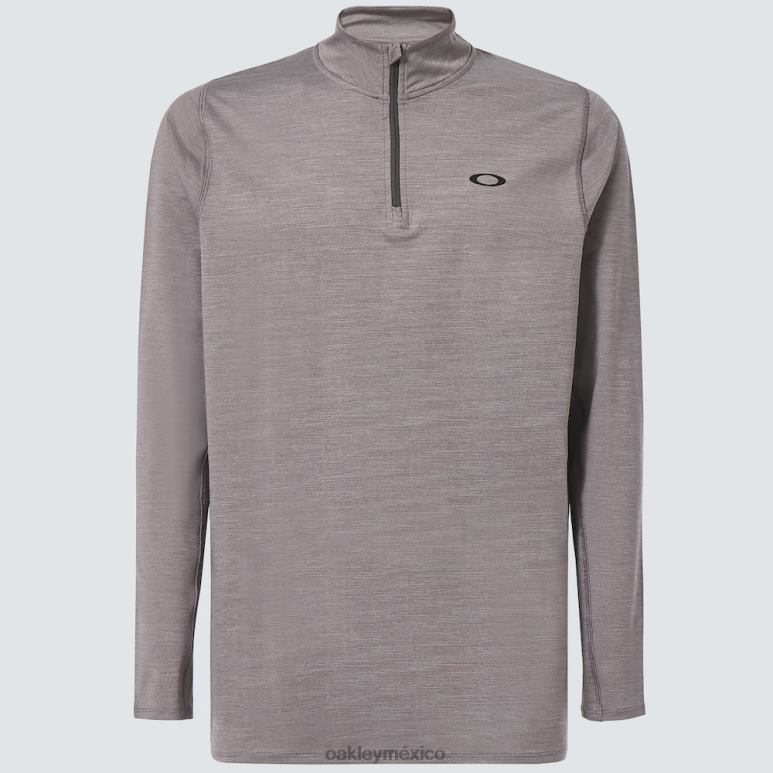 La Oakley Gravity Range Qtr te permite afrontar temperaturas más frescas tanto dentro como fuera del campo de golf. la fabricación completamente elástica permite un rango de movimiento óptimo para un swing mejorado, y el tejido jaspeado y suave al tacto brinda una comodidad general excepcional. un cuello simulado con cremallera agrega calidez adicional según sea necesario y está terminado con el logo de la elipse.